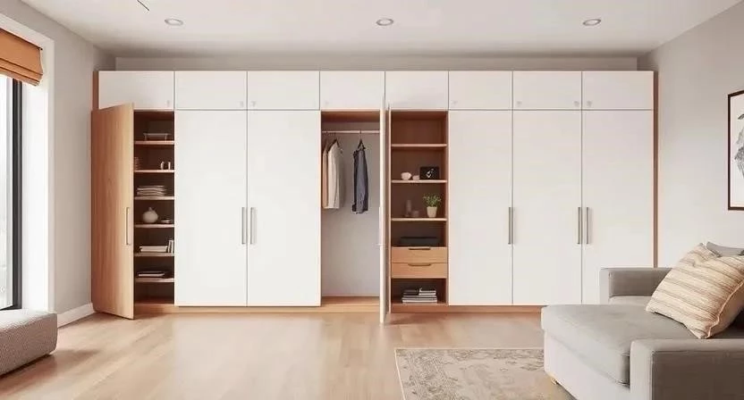 - Встраиваемый шкаф: Интегрируется в нишу или угол комнаты, что позволяет максимально использовать пространство.
