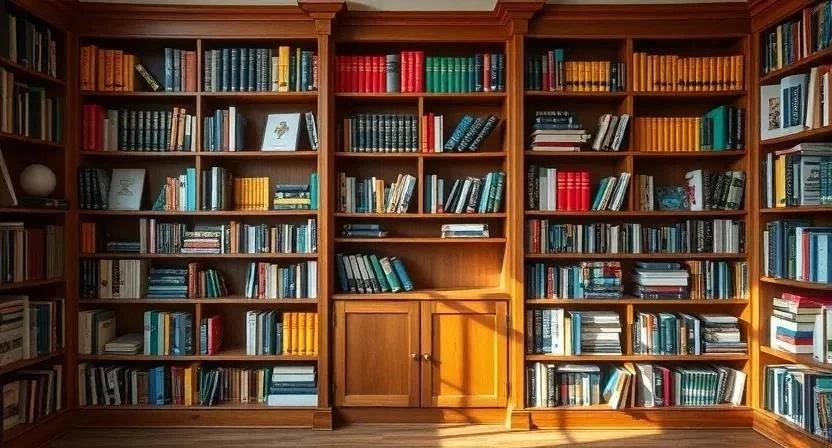 - Закрытые шкафы: Защищают книги от пыли и выгорания.