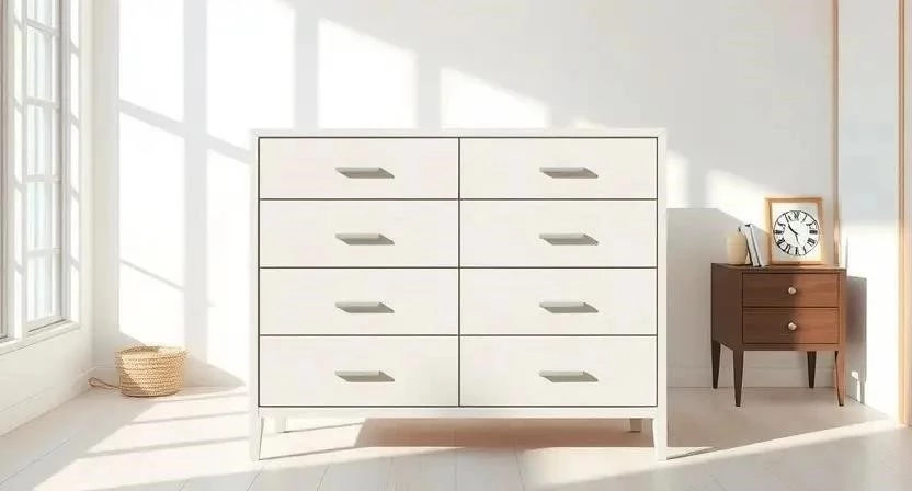 Ответ: Учитывайте цветовую гамму, материалы и формы комода.