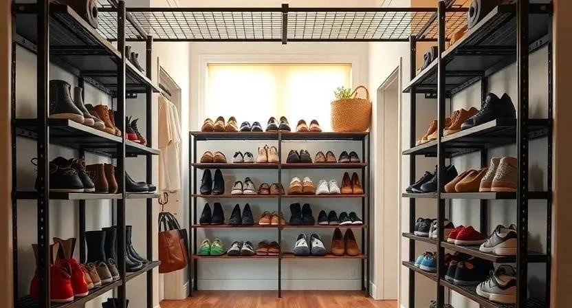 - Стеллажи для обуви: Открытые конструкции, позволяющие демонстрировать обувь как элемент декора.