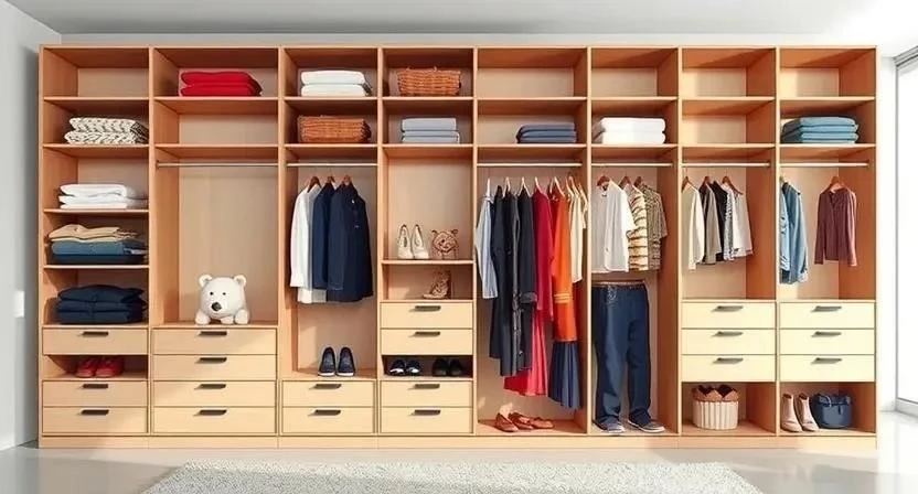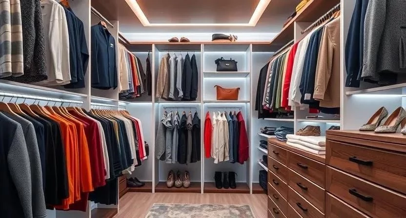 - Размещайте вещи по цветам и типам для удобства поиска.