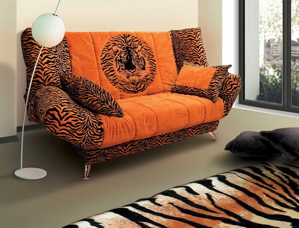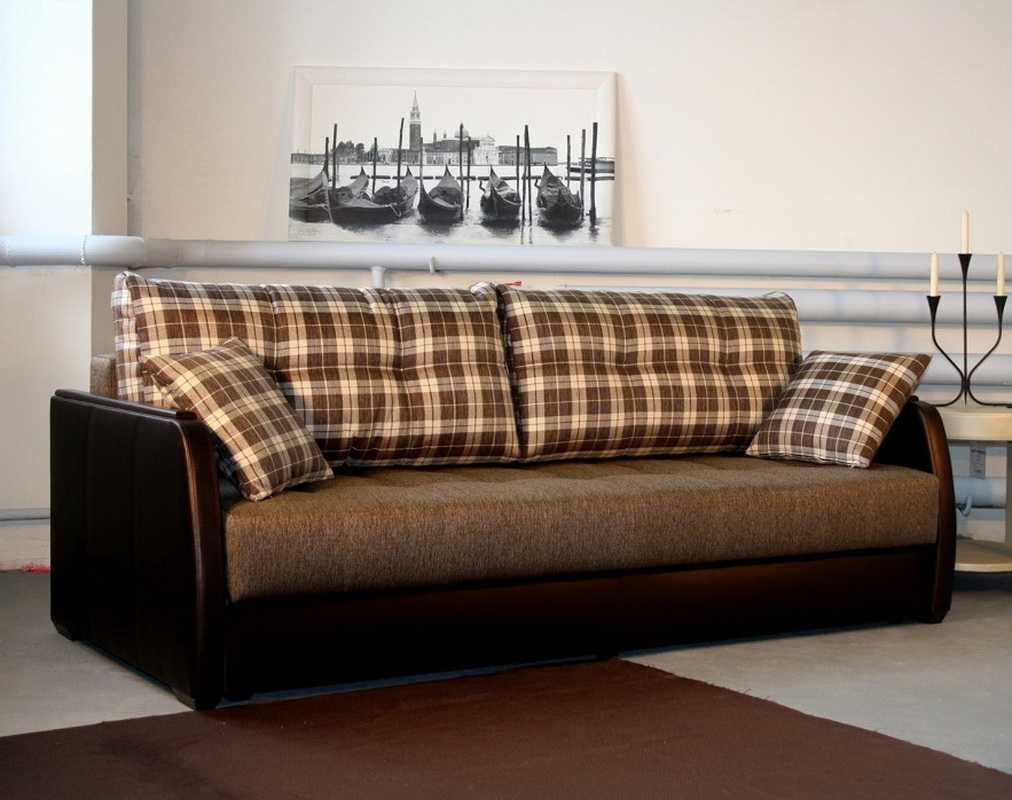 Обивка. При выборе обивки дивана необходимо учитывать эксплуатационные свойства материала, а также его внешнее соответствие дизайну помещения. Кожаная обивка привлекательно смотрится и обладает высокой износостойкостью, однако использовать данную мебель для сна не очень удобно, так как постельное бельё постоянно соскальзывает с гладкой поверхности кожи. Ткани с включениями шерсти имеют привлекательный вид, однако быстро затираются и могут принести дискомфорт в процессе эксплуатации в виде покалывания при лежании. Лучше всего зарекомендовали себя покрытия из смеси хлопка и синтетических включений — такие диваны имеют высокую устойчивость ко времени, могут быть представлены самыми разнообразными принтами и цветами, а также универсальны в эксплуатации. Такие варианты как флок и велюр выигрышно смотрятся, однако быстро затираются, а вот жаккард и рогожка — идеальный вариант обивки, к их недостаткам можно отнести только высокую стоимость.