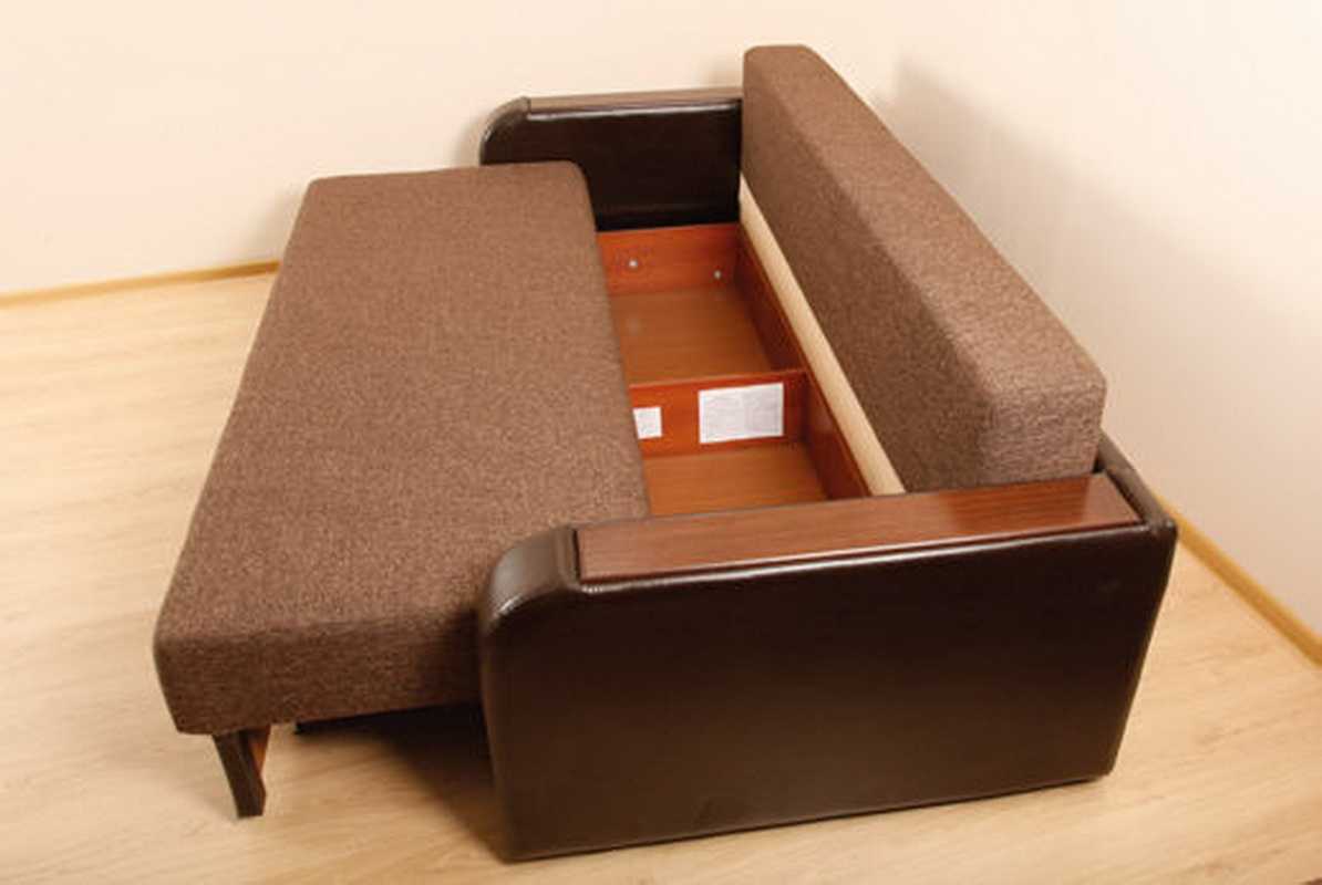 Пользоваться «раскладушкой» каждый день не так удобно, как вышеуказанными механизмами. Раскладывать ее гораздо труднее, процедура проводится в несколько этапов. Сначала с сиденья снимают подушки, потом извлекают внутреннюю конструкцию и матрас, далее ставят на упоры. Главный минус таких изделий — очень тонкий матрас. Спать на нем будет не очень комфортно. Металлические опоры давят, и человек не может как следует расслабиться. Такой вариант подойдет, скорее, для гостей, где можно поспать пару дней. Дольше выдержать будет трудно: начнет болеть спина, и наутро человек почувствует себя совершенно разбитым.