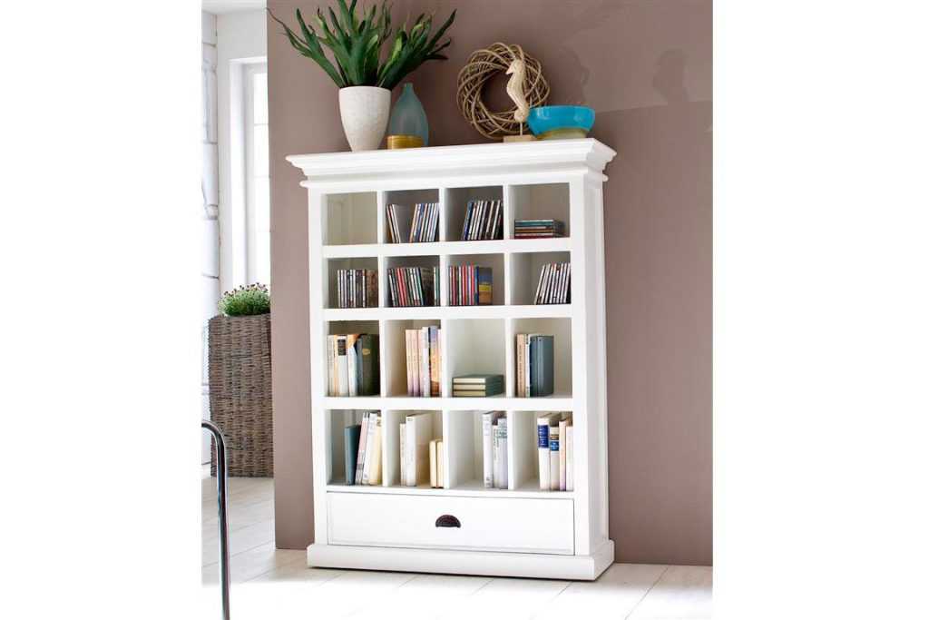 Шкаф книжный белый с размерами 90х40х205 см прекрасно будет смотреться в светлой гостиной. Он сделает комнату визуально больше и придаст ей изыска и гармонии. В сочетании с мягкой мебелью светлых тонов и белым ковром шкаф и комната в целом будут выглядеть идеально. В таком интерьере можно смело использовать приглушенные цвета или темные шторы.