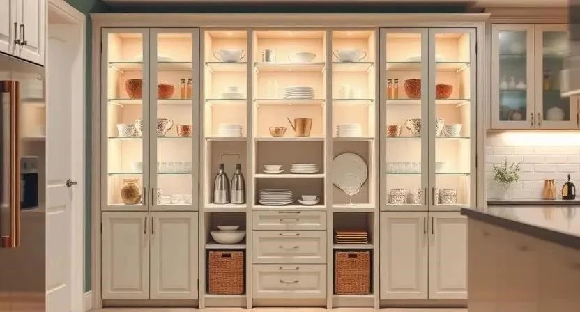 6. Шкафы с открытыми полками и закрытыми ящиками: Сочетают в себе функциональность и декоративность.