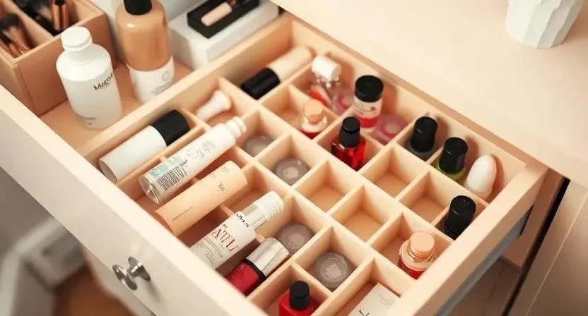 Ответ: Используйте разделители, органайзеры и коробки для хранения косметики.