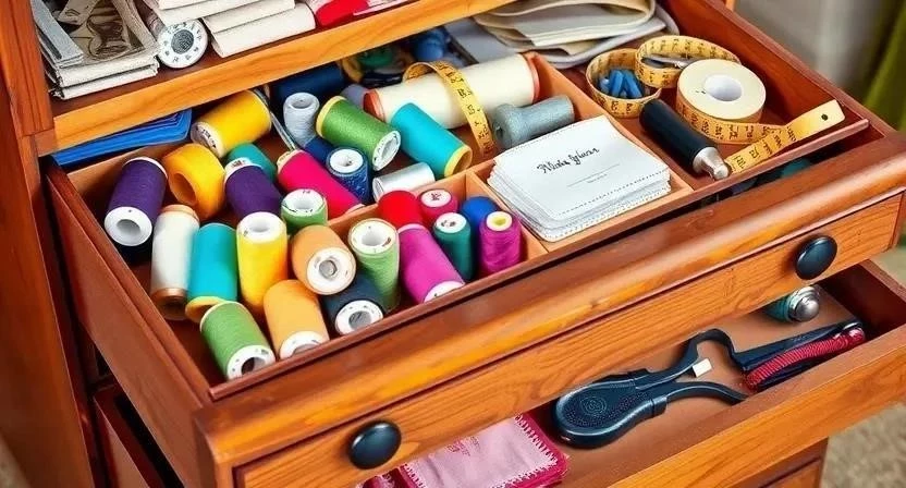 - Храните материалы по категориям: ткани, нитки, фурнитура, инструменты.