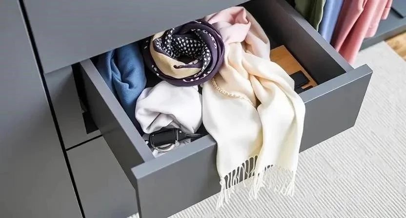 Недавно я заметил, что моя дочь начала использовать мои шарфы для своих игр. Пришлось купить ей отдельный комод с яркими органайзерами, чтобы она могла хранить свои шарфы и платки отдельно.