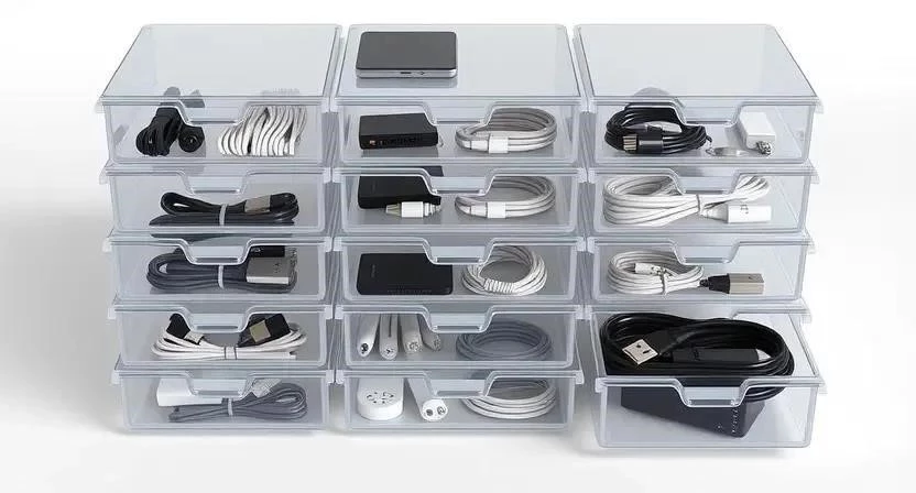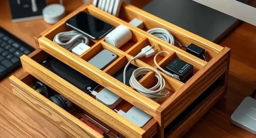 - Использование органайзеров: для проводов, мелких аксессуаров, адаптеров.