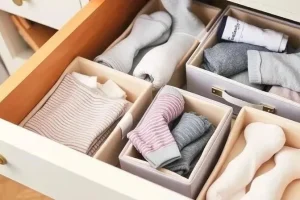 Ответ: Используйте разделители для ящиков, чтобы отделить одежду по категориям. В ящиках можно хранить не только одежду, но и другие вещи – книги, журналы, игрушки.