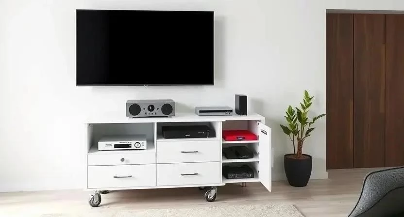 Преимущества: организация пространства, хранение электроники и пультов, стильный элемент интерьера. Недостатки: необходимость в регулярной уборке, возможность перегрузки ящиков.
