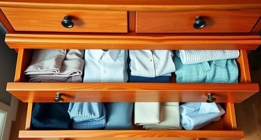 Регулярно сортируйте вещи, избавляясь от ненужного. Чистите комоды от пыли и грязи. Используйте органайзеры для ящиков. Складывайте вещи аккуратно.