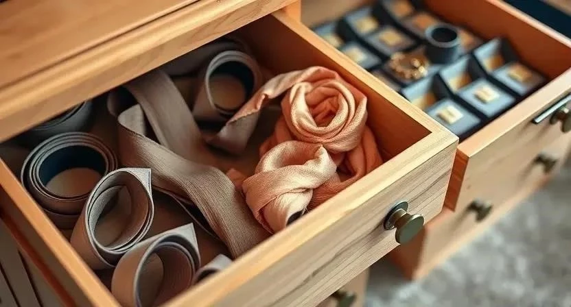 Ремни, галстуки, платки, украшения – все эти аксессуары требуют особого подхода к хранению. Для ремней и галстуков можно использовать специальные вешалки или органайзеры с ячейками. Для платков подойдут тканевые органайзеры или коробки. Украшения лучше хранить в специальных шкатулках или подставках, чтобы они не спутывались и не царапались.