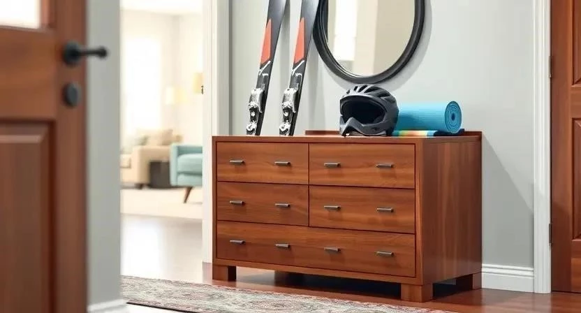 - Комоды с отделениями для лыж и сноубордов: Специально разработаны для хранения длинного спортивного снаряжения.