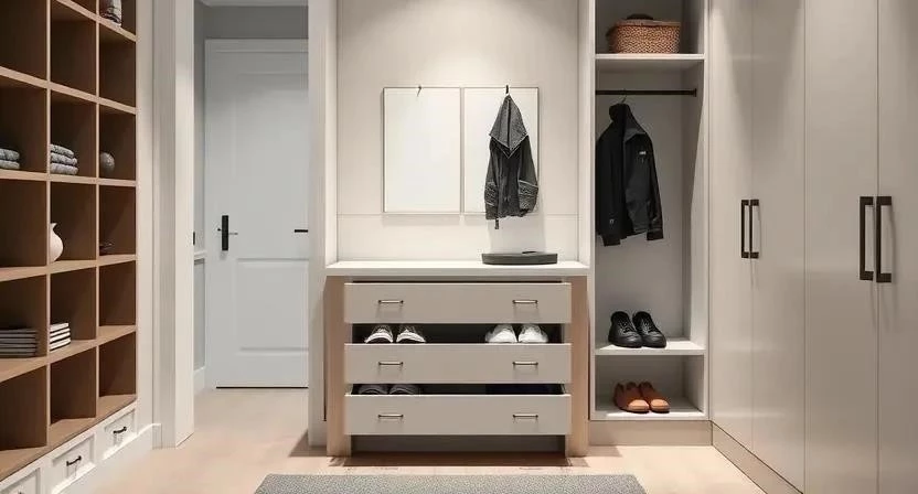 - Комоды с выдвижными ящиками: Универсальный вариант для хранения обуви, одежды и небольшого инвентаря.