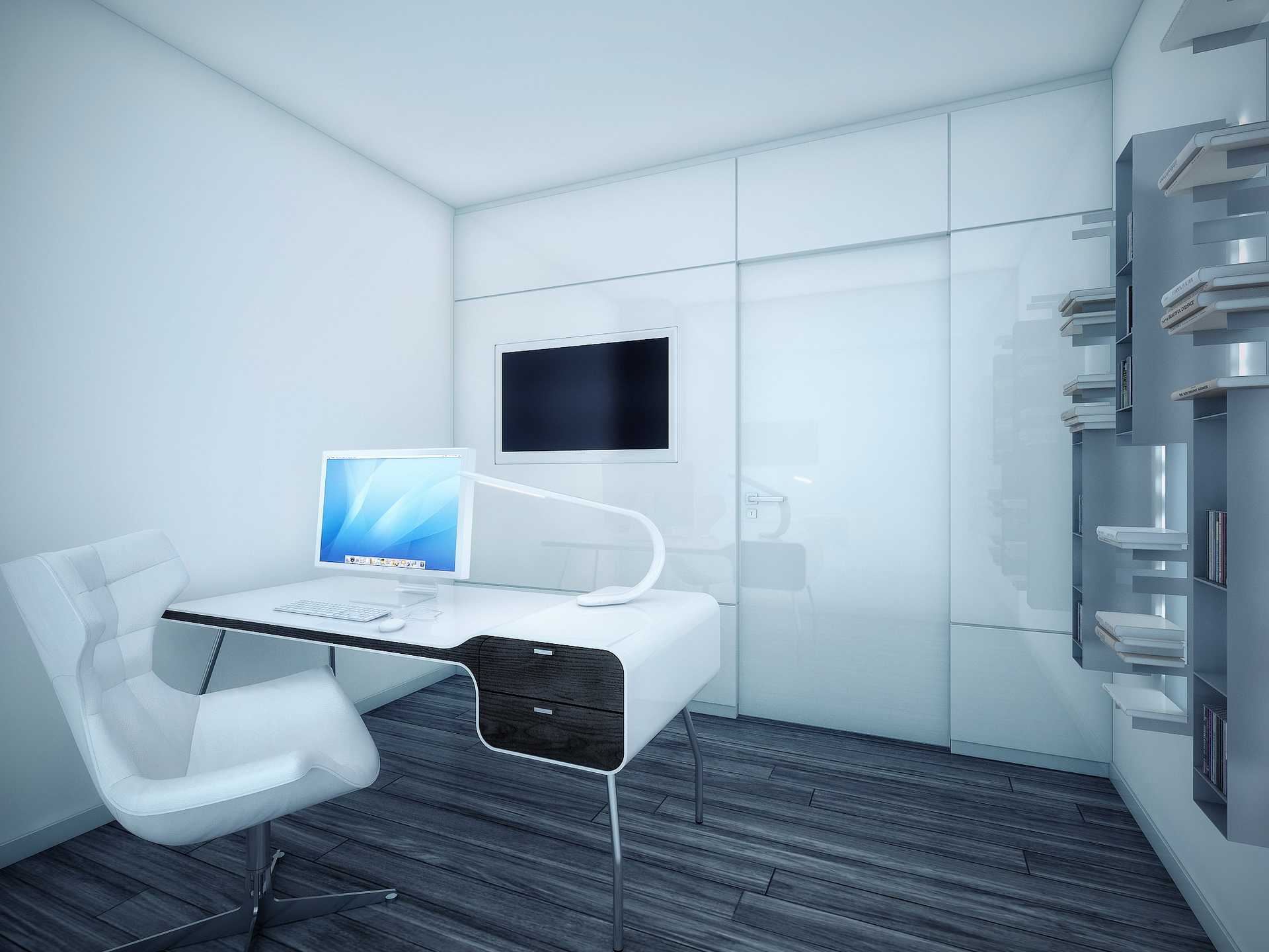 - Белый цвет положительно действует на нервную систему. Он расслабляет и настраивает на положительные мысли. Это большой плюс для домашнего кабинета.