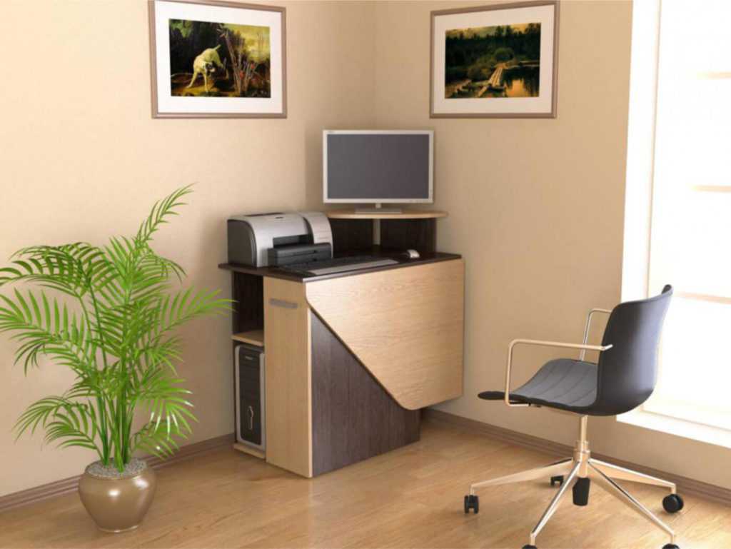 Стоит также упомянуть о мебели со встроенной столешницей. Последняя выдвигается по направляющим и служит полноценным рабочим местом. В распоряжении пользователя оказывается массивный комод с множеством ящиков или тумба. За ее дверками достаточно пространства для системного блока, а монитор и колонки можно установить на верхнюю крышку. Подобное изделие органично впишется в интерьер дома или квартиры.