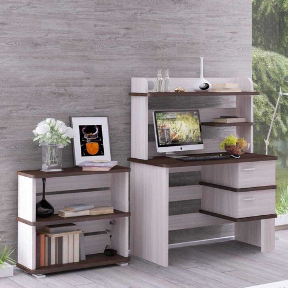 В большинстве случаев изготавливаются такие изделия из ДСП – древесностружечной плиты, которая покрывается слоем тонкого цветного ламината. Именно он и является тем самым декором, благодаря которому вы можете выбрать стол в цвете венге, ольхи, бука или любом другом предложенном вашему вниманию. Конфигурация и наполнение модели, которую вы выбираете, должны учитывать ваши потребности, а также количество документов и техники, которое вы планируете разместить на своем столике со стеллажом.