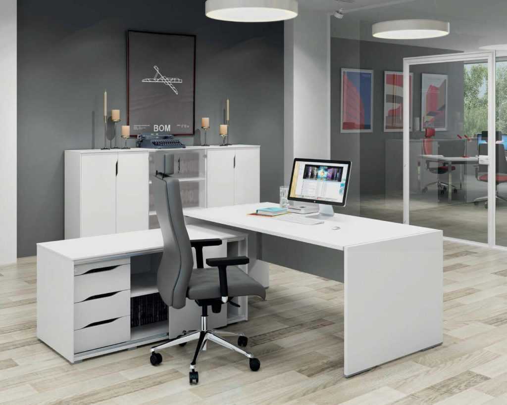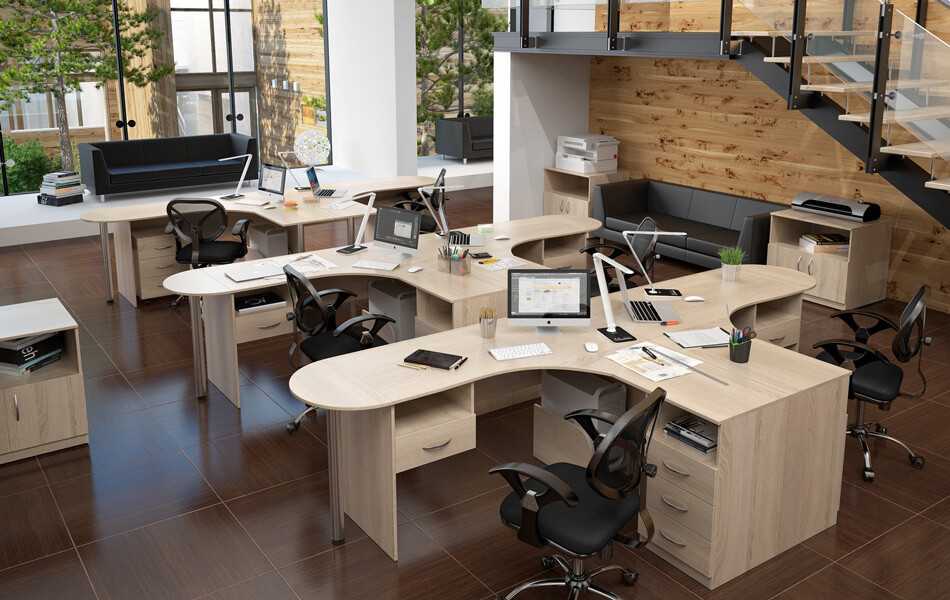 - Благодаря большим размерам столешницы на ней можно разместить все необходимые МФУ и надстройки без ущерба для рабочего пространства стола.