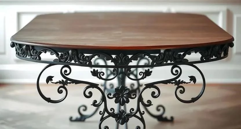 - Обеденные кованые столы: Идеальны для больших семей и торжественных приемов.
