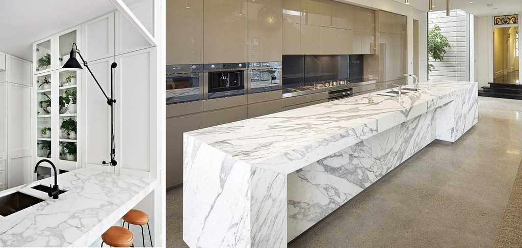 Плюсы этого материала в его внешнем виде. Нельзя представить более роскошной столешницы, чем из мрамора или из оникса.