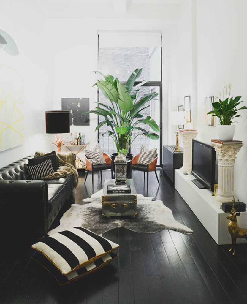 Черный диван также отлично смотрится в компании мебели в тропическом стиле: бамбуковые столы, мозаичные тарелки и экзотическая растительность (например, кактусы). Выбирая темный предмет мебели для интерьера, вы всегда должны «утеплять» его аксессуарами. Помогают не только специфическое сырье (дерево) и цвета (желтый, коричневый), но и забавные акценты: пальмы на подушках или надписи или животные на плакатах.