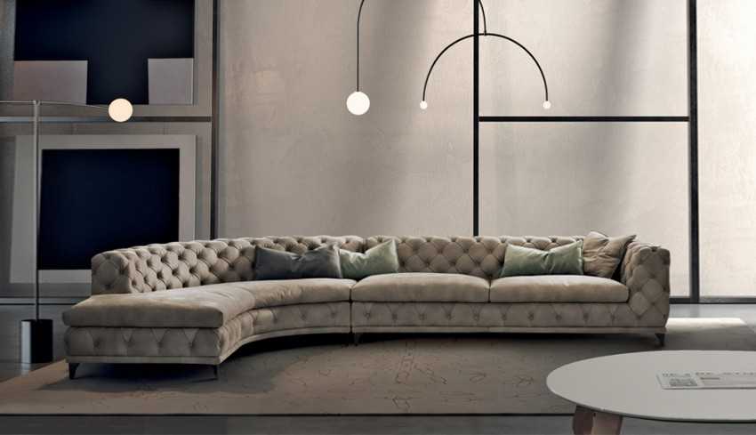 В дизайне гостиной. Популярны диваны-трансформеры с возможностью организации дополнительных спальных мест. Чтобы подчеркнуть изящество интерьера, выбирают винтажный диван, возможно, с капитоне (каретной стяжкой).