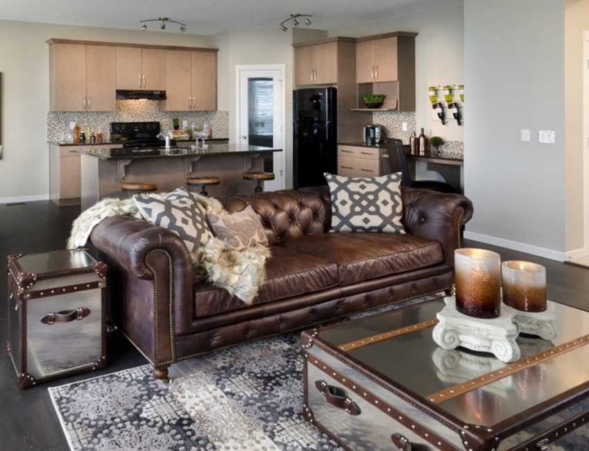 Коричневый кожаный диван – безвременная классика и новое звучание