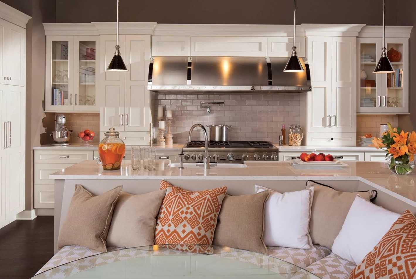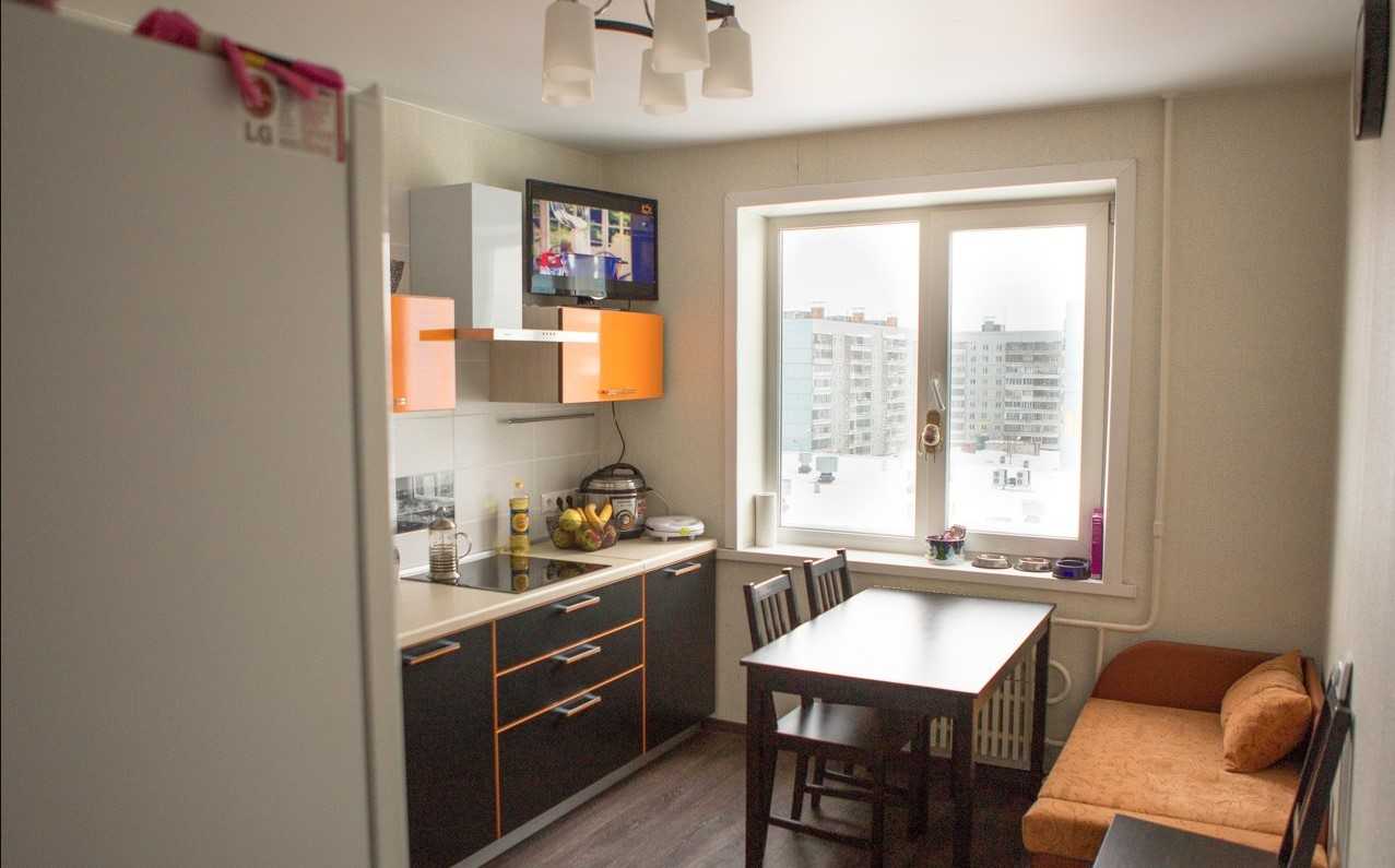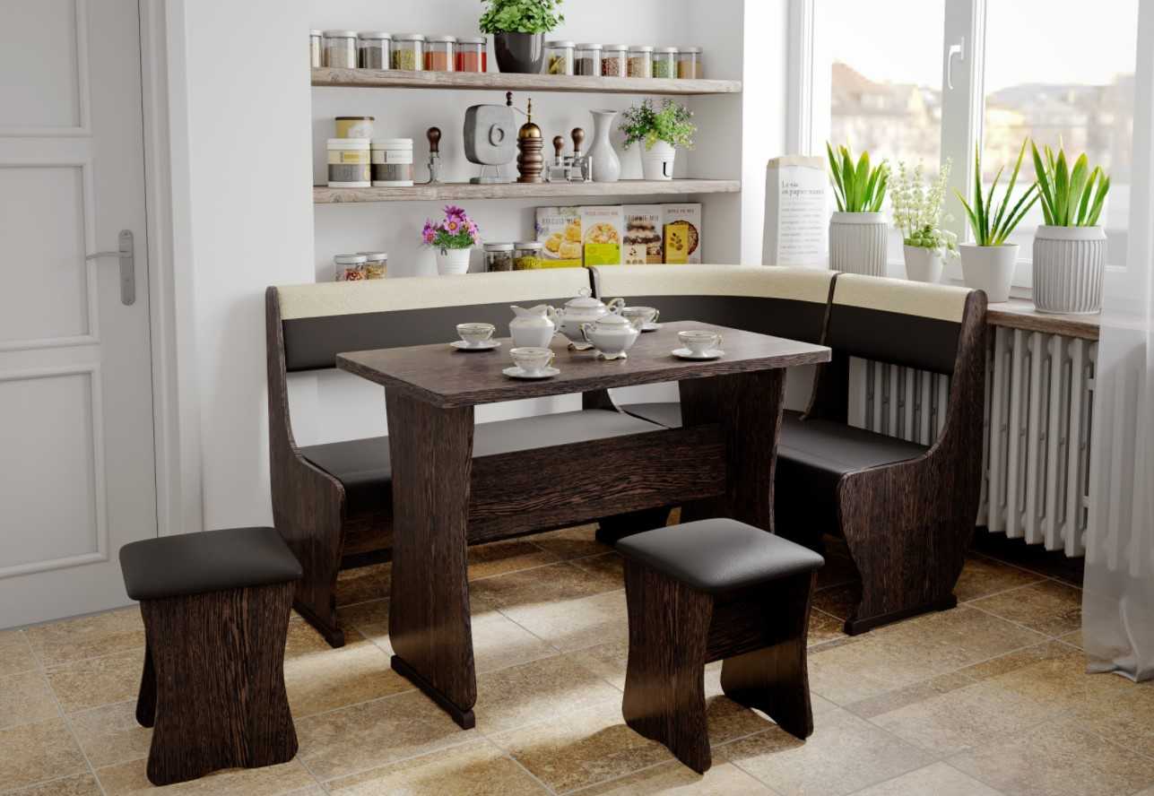 Встройка в гарнитур. Далеко не всегда получается реализовать эту идею, но если возможности позволяют, то можно получить действительно классное место для отдыха. И без какой-либо потери для полезной площади вашей кухни.