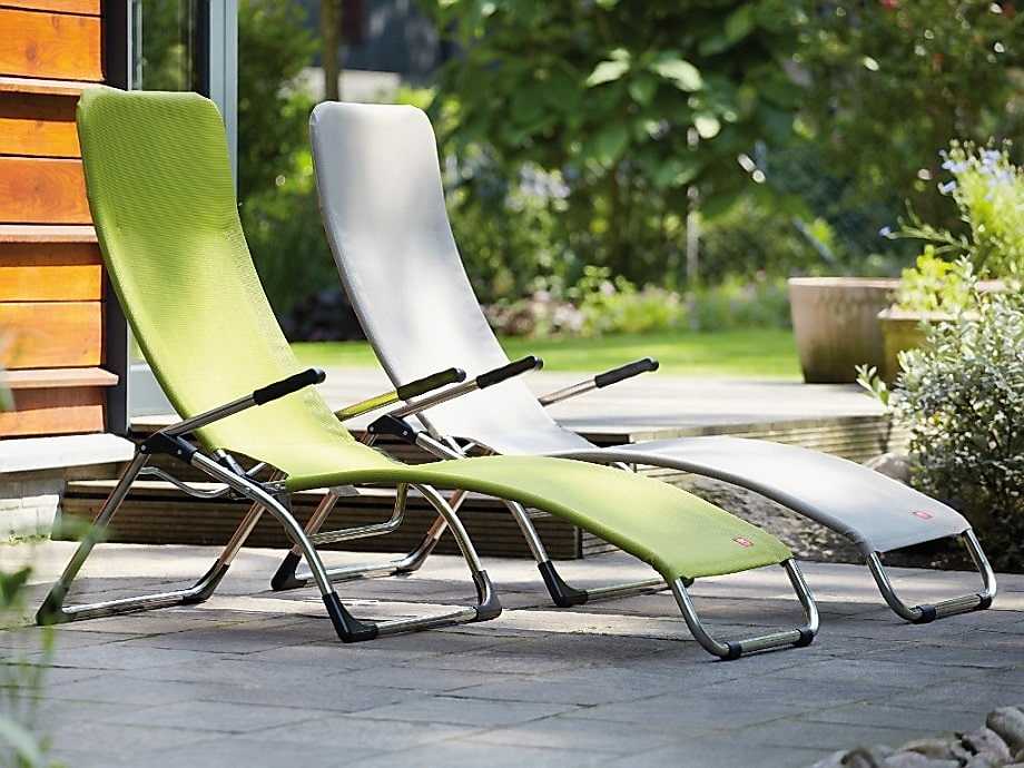 Раскладной шезлонг GoGarden Siesta может стать отличным решением для людей, имеющих проблемы с позвоночником. Спинку можно легко поднимать и опускать. Рама сделана из стали, подбивка – из полиэстера, обивка – спонж. Модель предназначена для использования на открытом воздухе. Такой шезлонг может обойтись в 5,5 тысяч рублей. Совсем другой типаж модели представляет собой GoGarden Acadia. Этот шезлонг с необычайно элегантным дизайном имеет стальную раму и обивку, сделанную из прочного сетчатого материала. Он имеет удобный подголовник и лямки для переноса конструкции в собранном состоянии. Такая модель обойдется в 5 тысяч рублей.