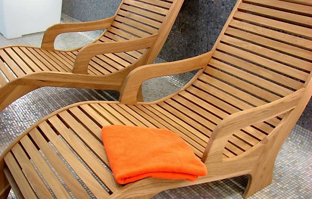 Деревянные модели. Такие шезлонги являются классикой. Как известно, лучше всего предпочтение отдавать натуральным материалам. Каркас может быть сделан как из натурального дерева, так и искусственного. Это могут быть дуб, бук, клен, кедр, скандинавская сосна. Отдельно стоит отметить мебель из натуральной лианы, однако она со временем заметно проседает.