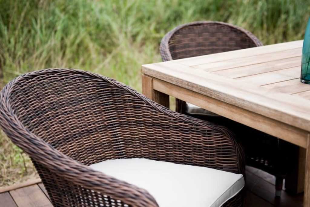 важно убедиться, что плетеная мебель обладает качественным и надежным каркасом, так как если он вовсе отсутствует, то такие конструкции будут достаточно уязвимыми перед разными нагрузками, поэтому постоянная эксплуатация приведет к быстрому выходу их из строя;