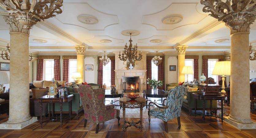 Пол и детали интерьера, выполненные с помощью камня – гранита и мрамора, придадут величие залу или гостиной в классическом дизайне.