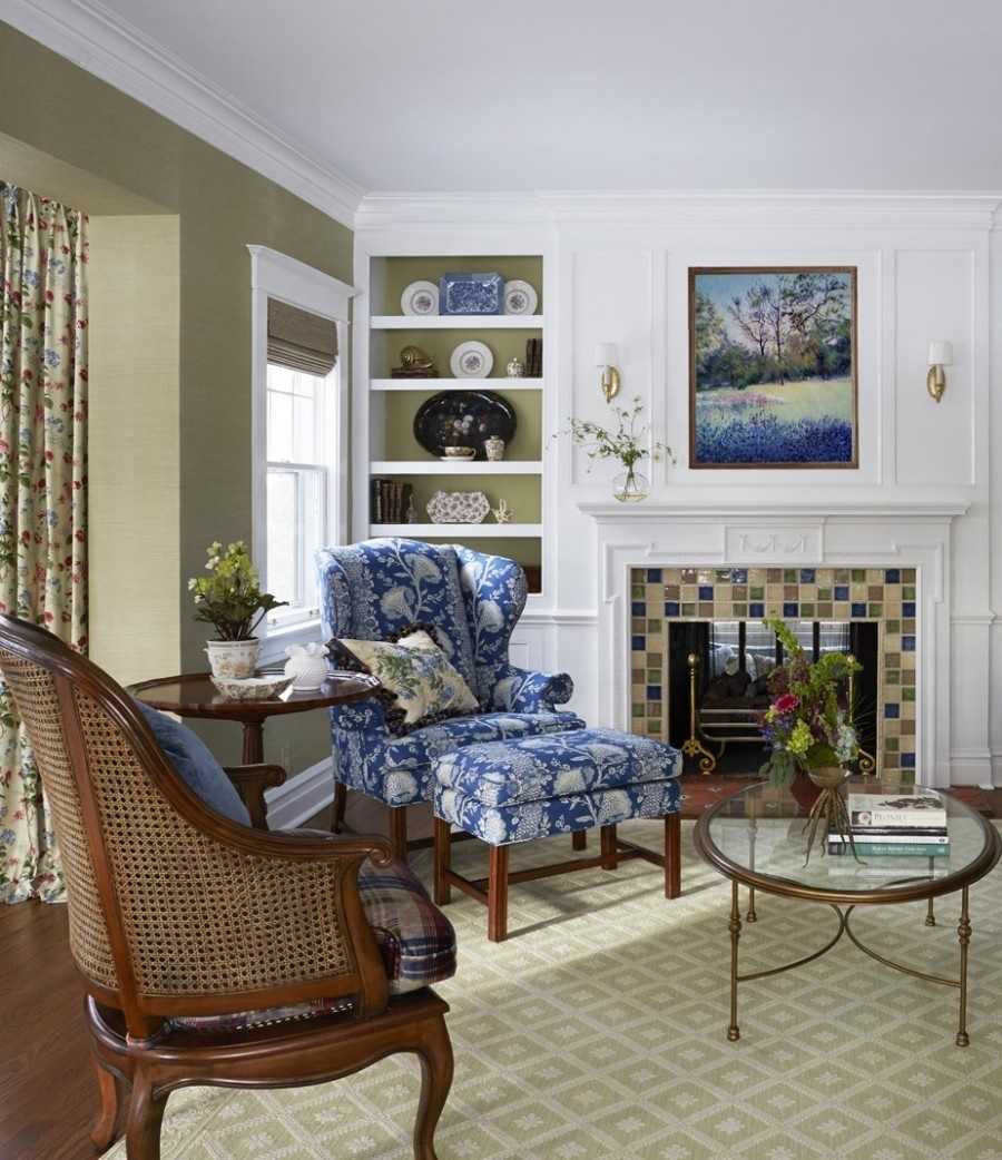Английское кресло в гостиной впишется в интерьер, как в соло варианте, так и в паре. Если с одним креслом все ясно ― поставить возле дивана, окна или в пустой угол, то если кресла два ― лучше придерживаться правил:
