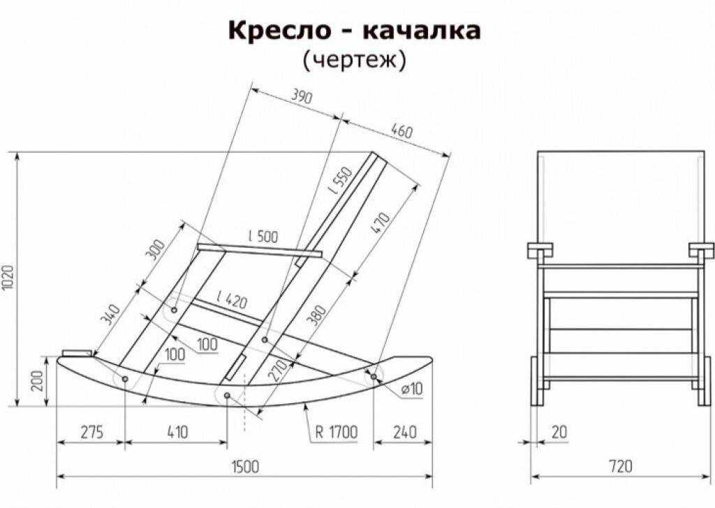 Многие производят сборку кресел-качалок по уже готовым чертежам, однако изделия не всегда могут подойти по размерам конкретному человеку. Поэтому перед началом изготовление следует понять кинематику данного изделия:
