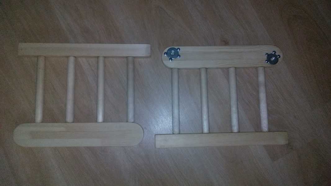 На следующем этапе из фанеры следует вырезать три царги, фаски с них снимать не обязательно. Ширина царг должна составлять 10 см, а длина – 120 см. Их длину можно уменьшать, а вот увеличивать нежелательно, так как это может снизить надежность конструкции. Затем из бруса 50х25 мм нужно вырезать 35 элементов длиной по 120 см, отшлифовать каждый отрезок, снять с него фаски.