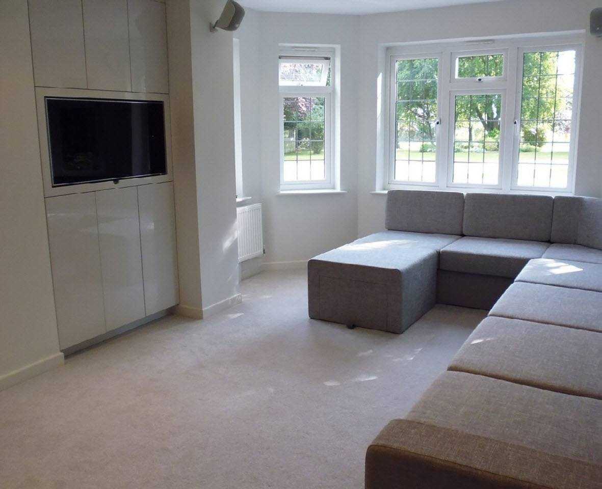 Уголок в небольшой гостиной: диван с выдвижной оттоманкой