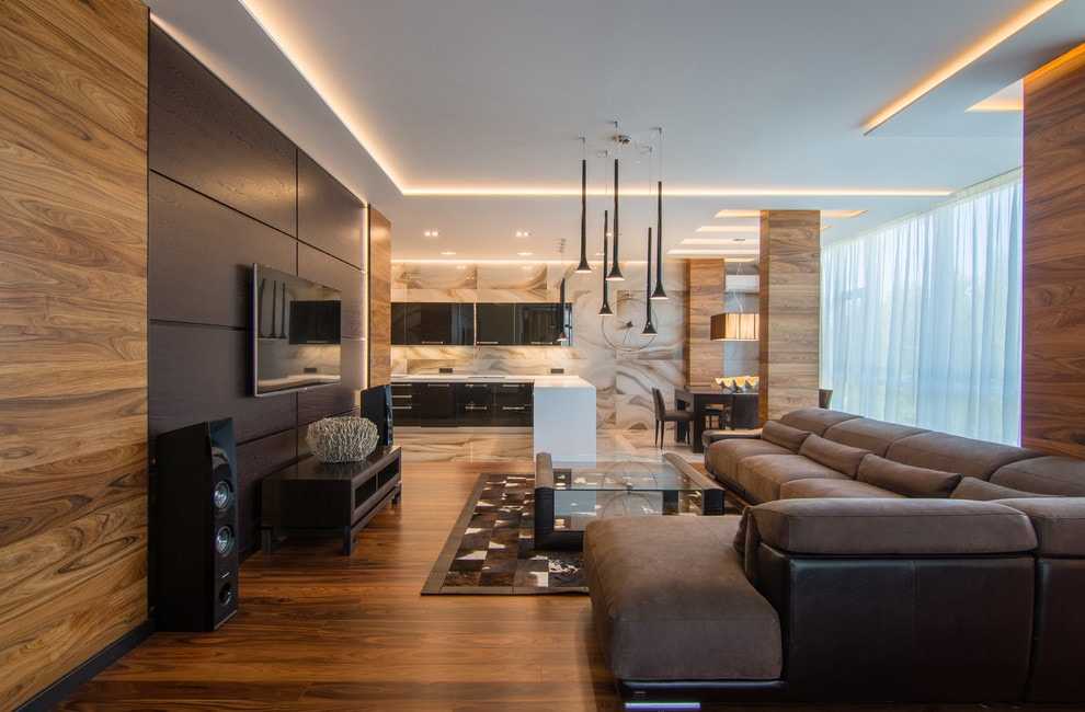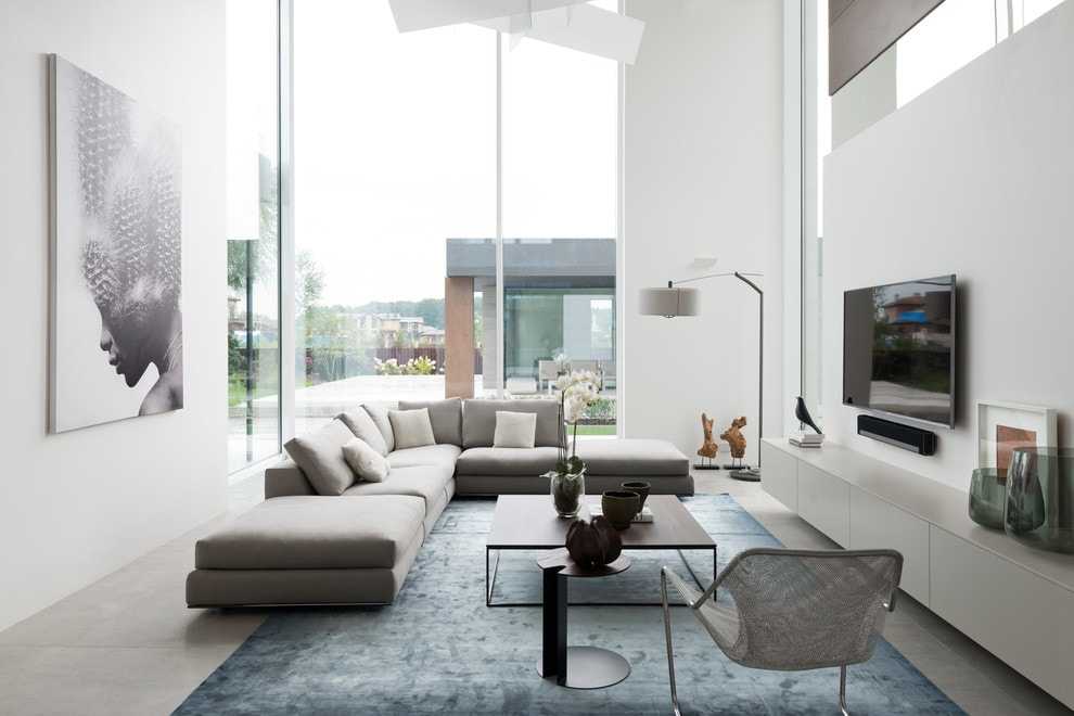 Вместительная комната позволяет купить большой диван с оттоманкой. Это очевидный факт. При организации большой гостиной стоит рассмотреть вопрос о том, следует ли размещать мебель традиционным способом в одном углу комнаты или оформить пространство в современном стиле, например, поставить диван в центральном месте. Инновационная мебель для гостиной полностью отделена от всех сторон. Поэтому у таких диванов с оттоманкой есть хорошо завершенная спинка которая гарантирует, что мебель будет привлекательна даже когда ее отодвинуть от стены.
