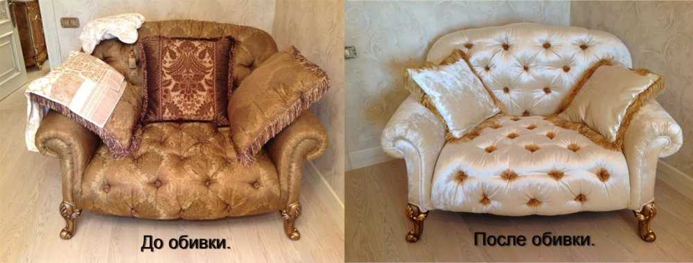 В процессе эксплуатации обивочный материал теряет свою привлекательность, яркость, гладкость, а возможно, и целостность. Однако каркас мебели все так же прочен и надежен. Приобретать новый элемент мебели нерационально, ведь можно лишь сменить обивку.