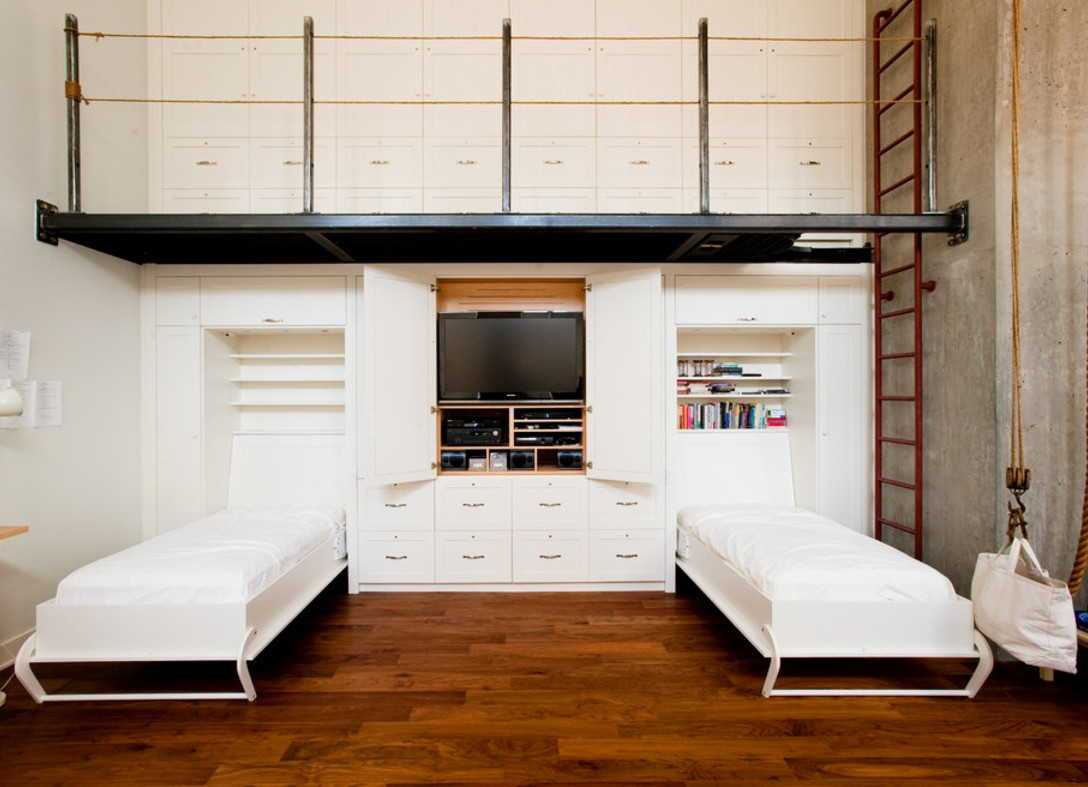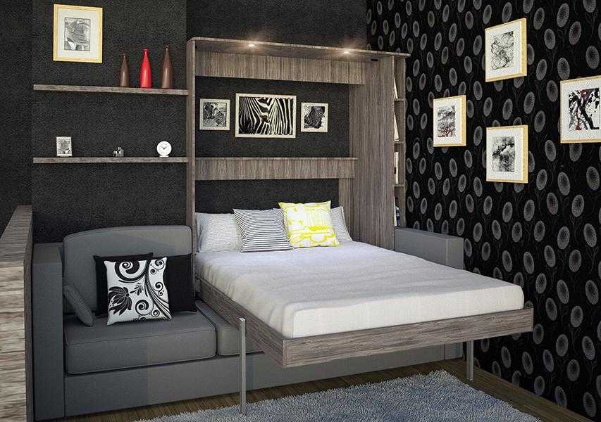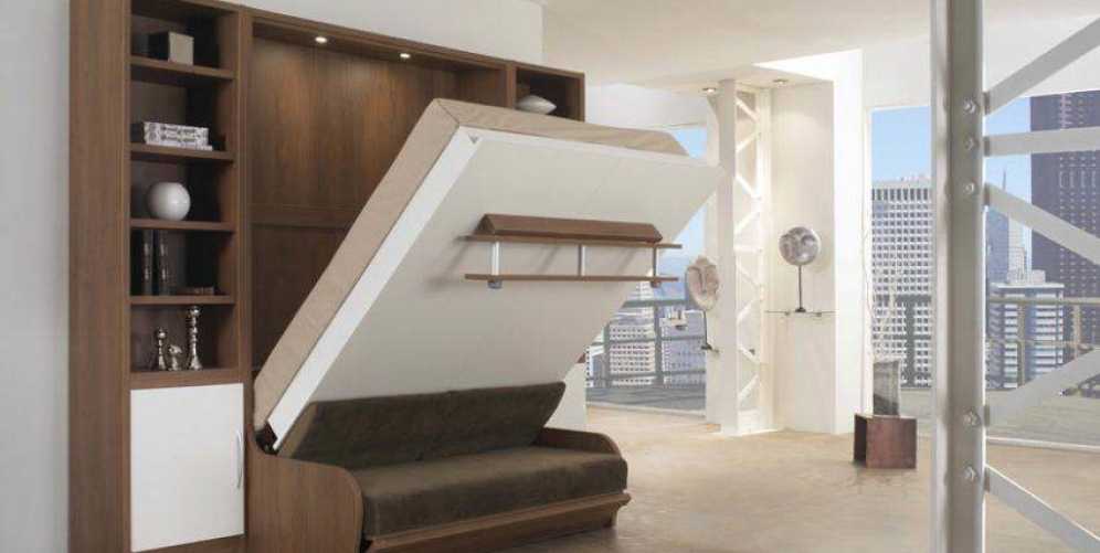 Данная разновидность кроватей позволяет эффективно использовать площадь в помещениях, совмещая в себе одновременно несколько предметов мебели. Существует множество вариантов трансформирующихся конструкций, но для коридора подойдет шкаф-кровать. Они могут быть как двуспальными, так и односпальными и даже двухъярусными. Если вам необходима двуспальная модель, то учтите, что она займет достаточно много места в разложенном виде. Поэтому необходимо предусмотреть свободное место с учетом запаса, в противном случае если вам нужно будет пойти в комнату, то придется ходить по кровати.