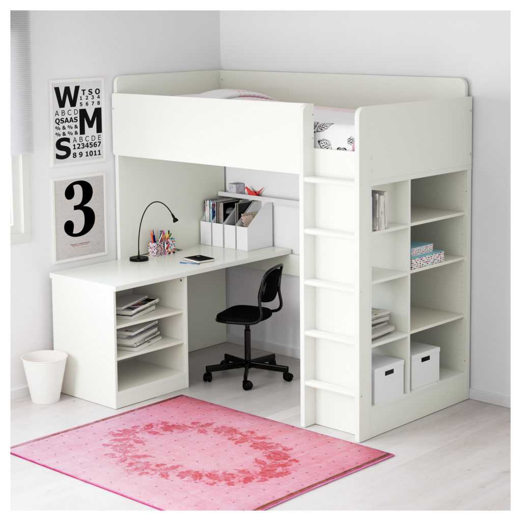Линейка моделей от Икеа включает не только саму кровать-чердак, но и разнообразные варианты по заполнению нижнего яруса: системы хранения, комоды, столы, отсеки с полками и так далее. Также предлагается достойный ассортимент ортопедических матрацев и белья для кроватей.