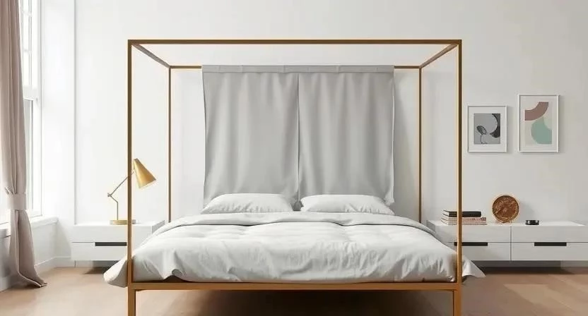 | Кровать-платформа | Дерево, металл | Современный, минимализм | Низкая конструкция, балдахин крепится к потолку или стенам |