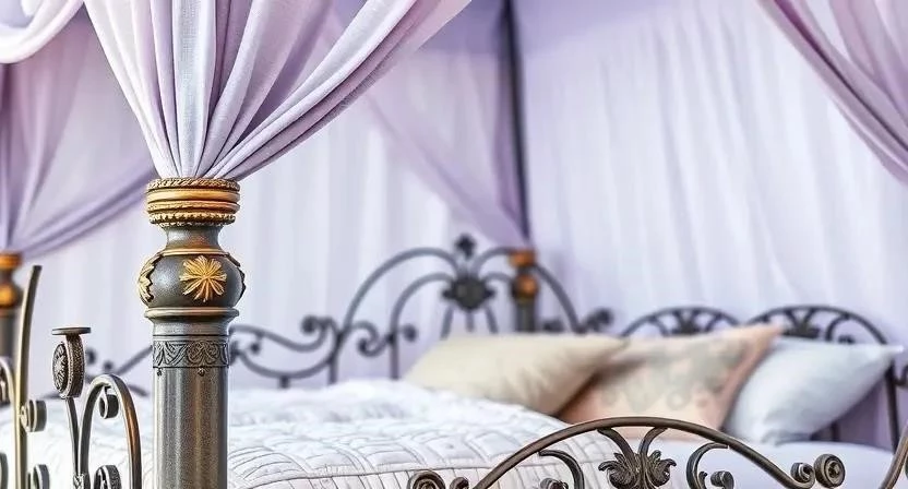 | Кованая | Металл (кованое железо) | Винтажный, прованс, шебби-шик | Изящные кованые элементы, балдахин из легкой ткани (органза, шелк) |