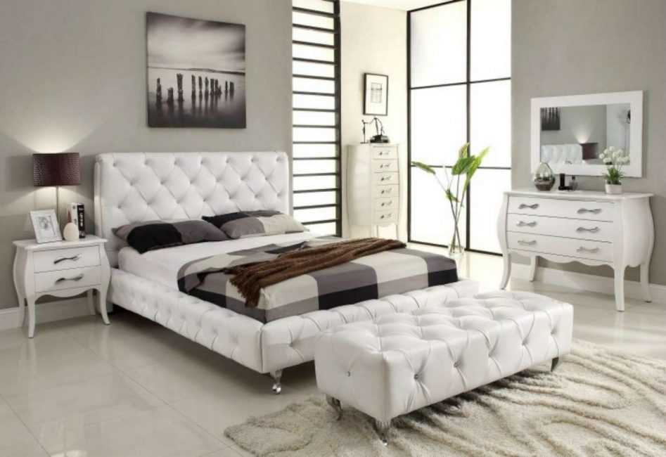 Белая кровать из кожи — одна из самых роскошных моделей, которая станет великолепным дополнением в классическом интерьере.
