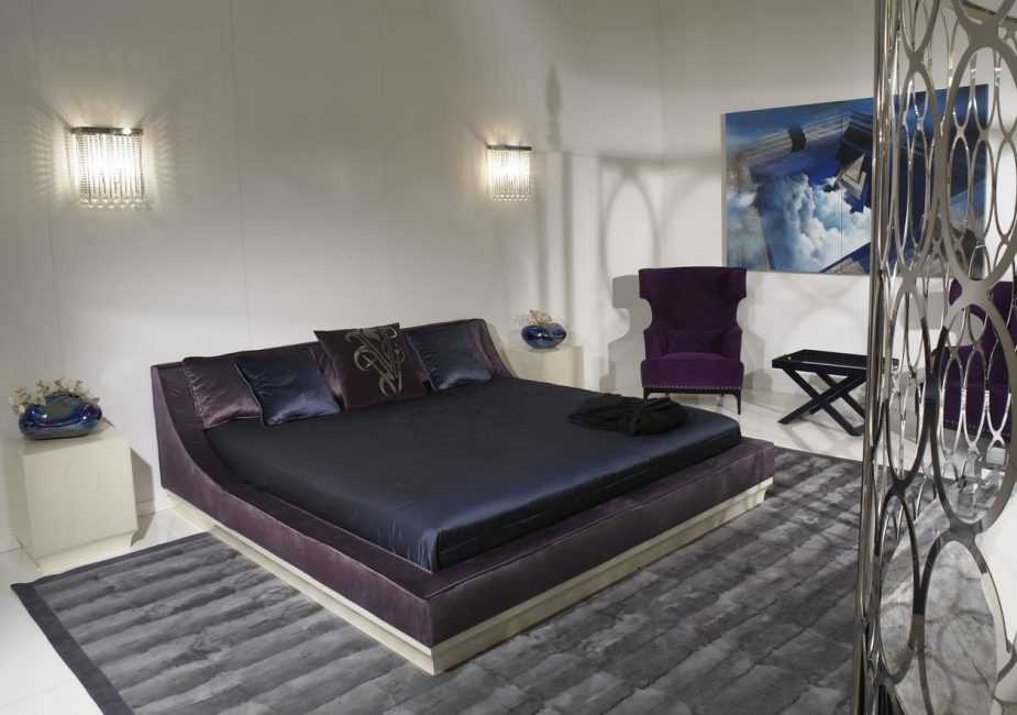 Кровать с низким изголовьем — более лаконичный и практичный дизайн. Невысокая конструкция подходит для модерна и арт-деко. Она приблизительно достигает линии плеч человека, который находится в полу сидячем положении на кровати.