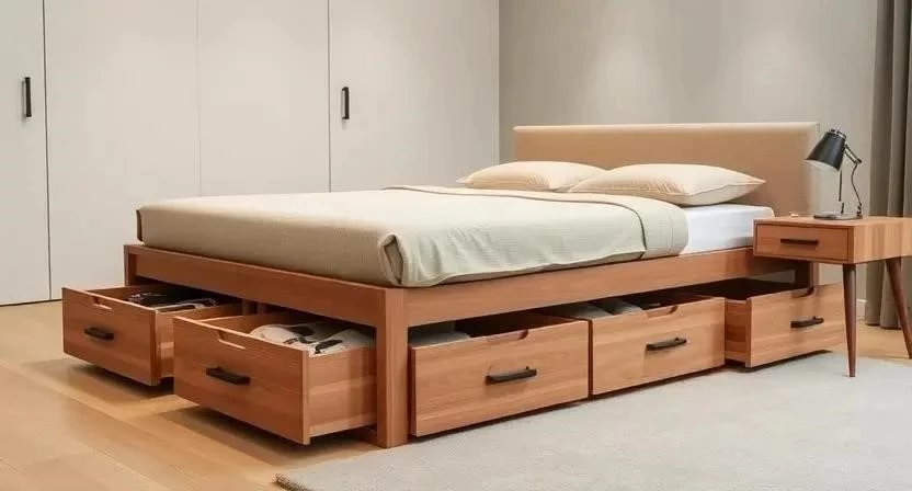 - Кровати с выдвижными ящиками: Классический вариант, ящики легко выдвигаются и обеспечивают быстрый доступ к хранящимся вещам.