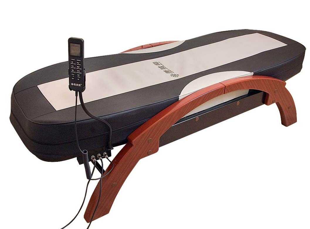 массажная кровать — стационарный предмет мебели, оборудованный пультом управления. Кровать снабжена инфракрасной карбоновой панелью, роликами из нефрита, оказывающими мощный оздоровительный эффект