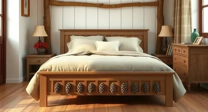 Виды кроватей с декором из шишек