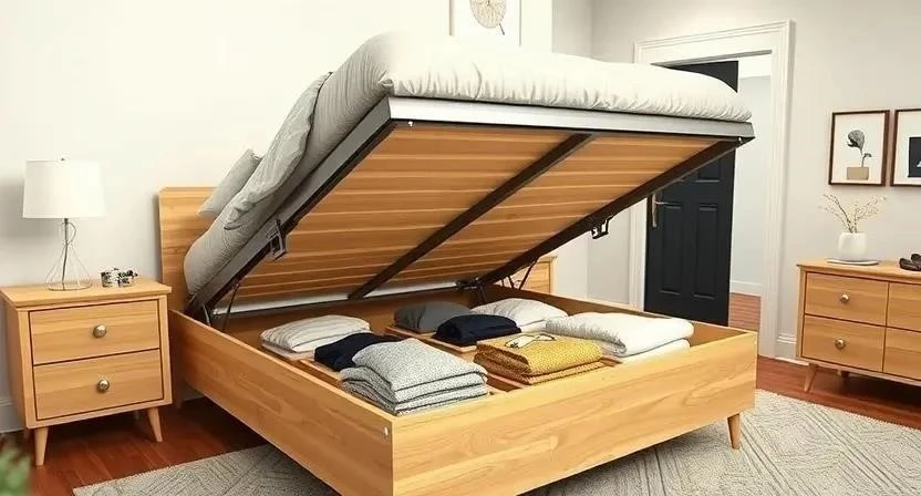 Вопрос: Как организовать хранение вещей в нише кровати? Ответ: Используйте коробки, разделители и органайзеры для поддержания порядка.