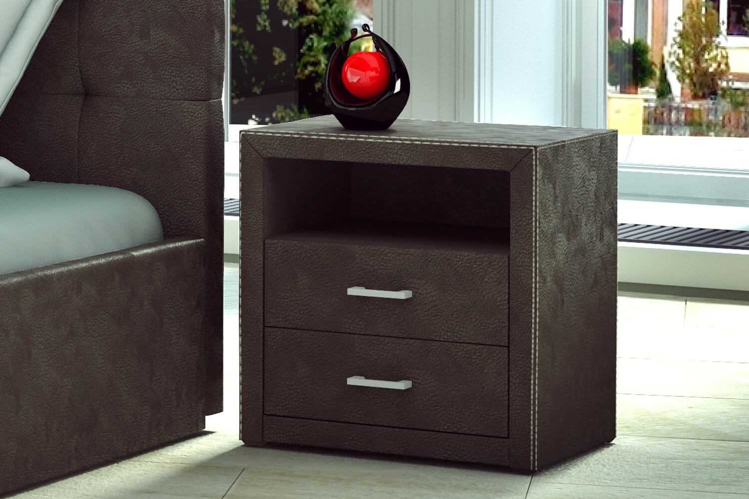 Отдельно стоит упомянуть о моделях с кожаной, тканевой, меховой отделкой. Корпус изделия декорируют полностью или частично в соответствии с дизайном изголовья. Дополнительно с обивкой применяют тонкий слой мягкого наполнителя. Такая тумба выглядит оригинально и стильно, гарантирует высокий уровень безопасности, может выступать в качестве импровизированного пуфа.